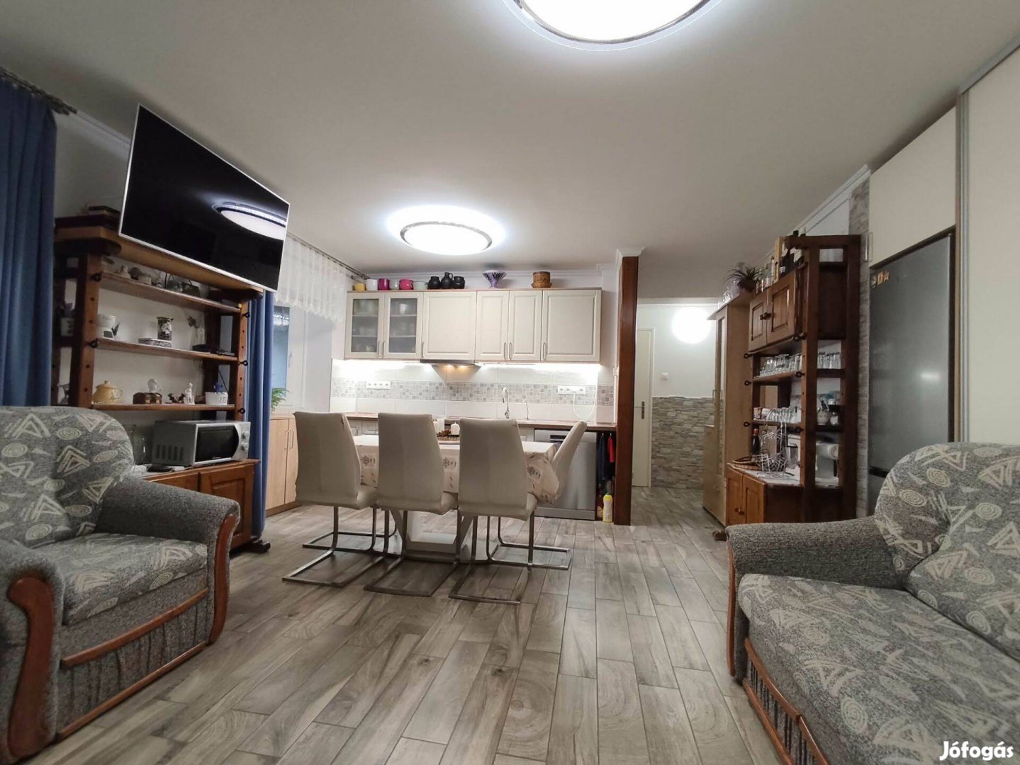 Pakson, a buszpályaudvartól, Pennytől, Rendelőintézettől, Dunától, hivataloktól 2 perc sétára található, 83 m2-es, dunai örökpanorámás, nagyon csendes, teljesen felújított, IV. emeleti, szigetelt téglalakás (3 szoba, amerikai konyhás nappali, spejz, külön WC, fürdő, gardrób, 2 nagy beépített szekrény, erkély) eladó. (Alaprajz kép nem méretarányos, de méretezett.)