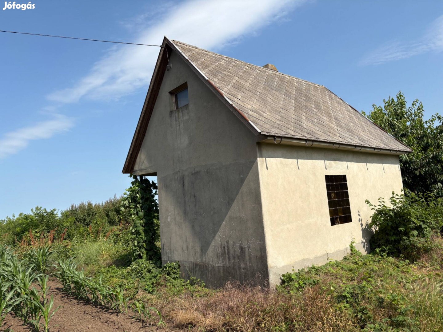 Az ingatlanon található egy 20nm alapterületű kisház beépíthető padlástérrel .Az épületben víz villany található.A szennyvíz csatorna az épülettől 20m retalálható amire rá lehet kötni .
