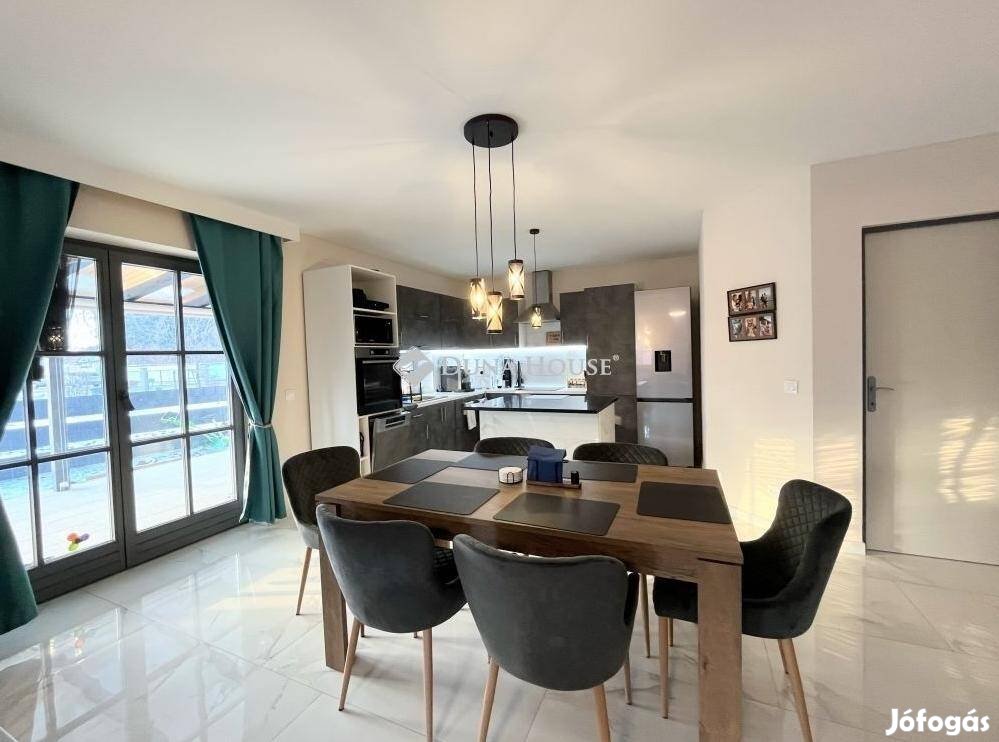 Beleszeretős családi ház, magas műszaki tartalommal párosítva!!Szombathely közvetlen szomszédságában, az osztrák határtól pár km-re, Sé egyik csendes mellékutcájában található ez a nívós, 130 négyzetméteres családi ház. A sok-sok egyedi megoldással, extrákkal bővelkedő, tágas terekkel rendelkező házban a nappalin kívül 3 szoba került kialakításra. A szobák, valamint a fürdőszoba jól elkülönülnek az amerikai konyhás nappalitól, így nagyobb vendégség esetén sem zavarják egymást a ház lakói. A nappaliból nyíló, 30 nm-es fedett terasz kiváló kikapcsolódási tér, akár télikertként is hasznosítható. Ebben a házban minden megtalálható, amit ma egy igazi otthontól elvárunk.A modern gépekkel felszerelt konyha, háztartási helyiség, valamint a tágas gardrób minden háziasszony álma. Az egyszintes épület belső kialakításánál a praktikusság és élhetőség volt a fő szempont a magas műszaki tartalom kivitelezésével:- 30-as porfix téglával épült mosható, szilikonos vakolattal ellátott, hőszigetelt homlokzat- kamera - elektromos, kamerás kapunyitás - fa födémszerkezet 20 cm vastag kőzetgyapot szigeteléssel, alul-felül hőtükör fóliával ellátva- padlástér járható burkolattal- hőszigetelt fa nyílászárók,- teljes ház led világítással szerelve,- nagy kopásállóságú burkolatok,- épített konyhasziget gránit munkalappal - 380 V az ingatlanban és a garázsbana tájolást kihasználva a tetőn 6,3 KW-os napelemek lettek telepítve, ami 8 KW-ig bővíthető.A ház fűtését fűtőpanelek és padlófűtés biztosítja. Az utcafronton egy elektromos kapuval szerelt 18 négyzetméteres garázs is épült. Az öntözést vagy akár a medence töltését egy működő kútról is megtehetjük.Az 533 nm-es telek termő gyümölcsfákkal telepítve, de van hely virágoskert kialakítására is.Ha a város közelébe, ám mégis csendes helyre vágyik, ha olyan házat keres, ahova csak be kell költözni, akkor ezt látnia kell!További információkért és megtekintésért kérem hívjon vagy írjon emailt!