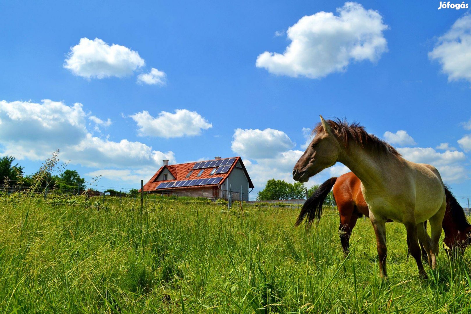 Energetikai szabadság: 10 kW-os hibrid napelemrendszer (szaldó elszámolással!) és saját fúrt kút (nitrátmentesítővel és vízlágyítóval) biztosítja a függetlenséget.