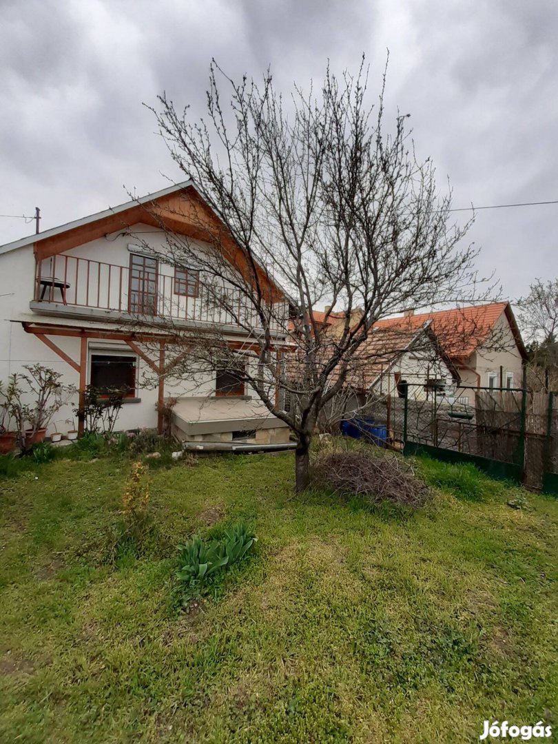 Bekerített udvarban 4 szobás családi ház, kert, garázs, pince, kerékpár tároló, fedett szaletli sütés-főzés-bográcsozáshoz vagy a gyerekek részére fedett játszóhely (ping-pong asztal, csocsó stb.stb)