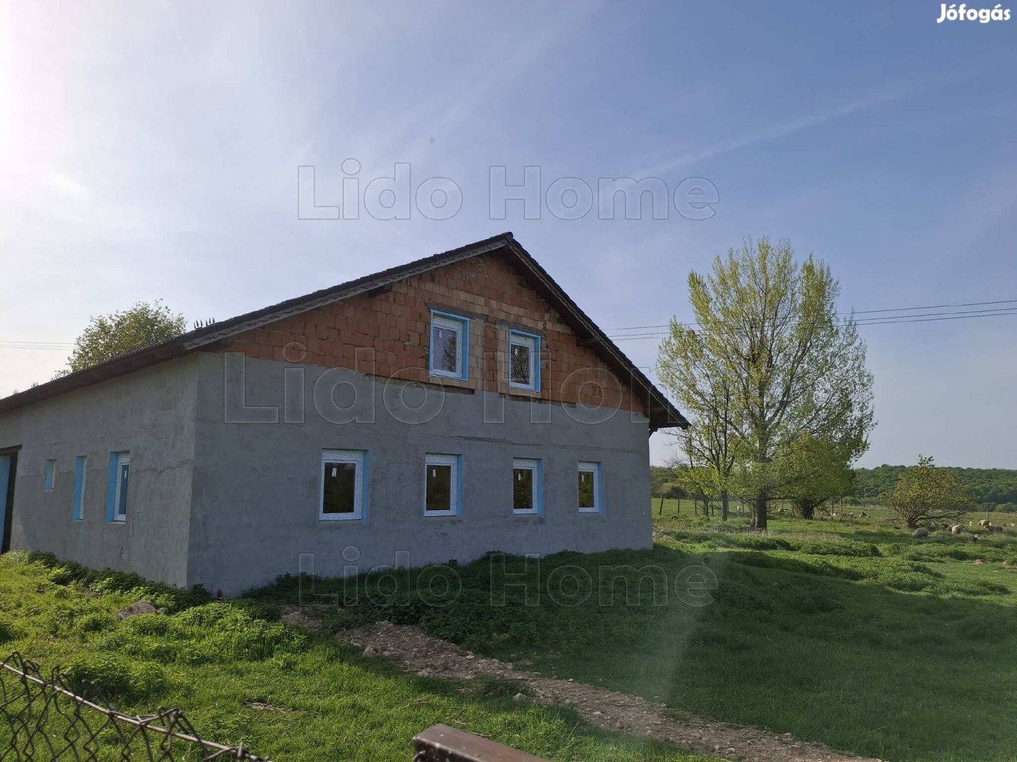 -10.664m2-es telek, közvetlenül a falu elején, rajta egy 170m2-es szerkezetkész házzal