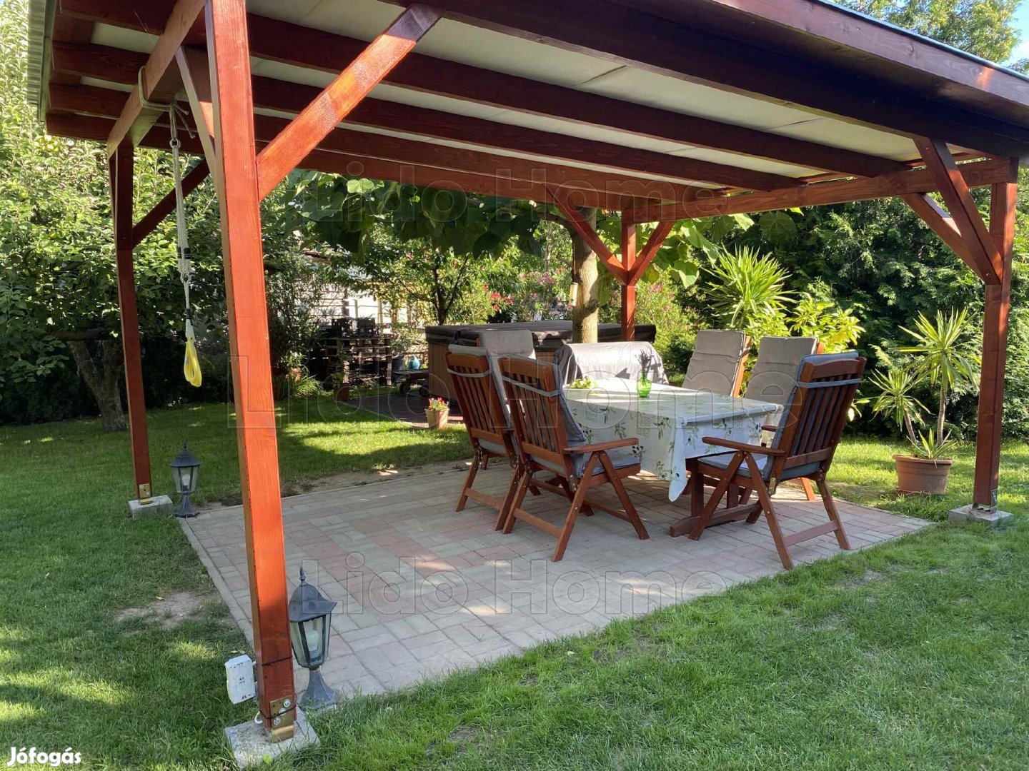 A szépen gondozott telken fedett kocsibeálló, fedett kerti kiülő és jacuzzi biztosítja a mindennapok kényelmét.