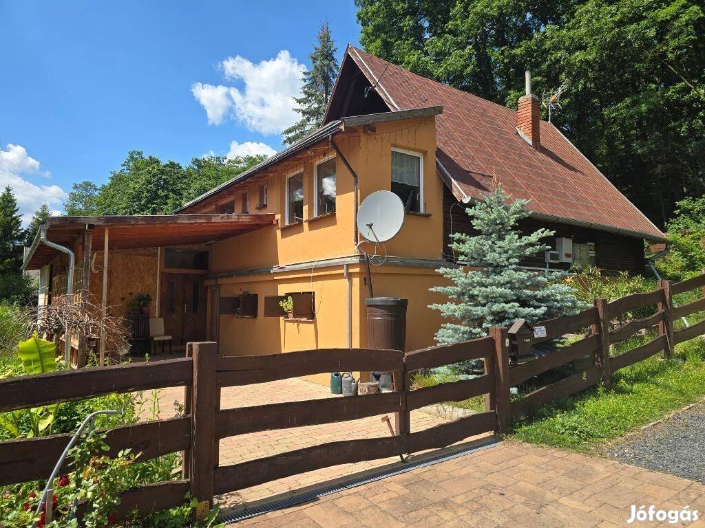 Eladásra kínálunk Veszprém Vármegyében, a Bakony egyik legkedveltebb üdülőövezetében, Döbröntén, egy 125 m2-es, jelenleg állandó lakhatásra is kiválóan alkalmas hétvégi házat. Az ingatlan közvetlenül az erdő szomszédságában helyezkedik el, ahol a természet közelsége valóban kézzelfogható - itt reggelenként madárcsicsergésre ébredhet! Az ingatlan tégla- és faszerkezetű kialakítású, nettó 125 m2 alapterületű, összesen 2+2 szobás, két lakószinttel rendelkező épület, amely az elmúlt évek során teljes körű felújításon esett át - így kiváló műszaki és esztétikai állapotban várja új tulajdonosát. A földszinten egy hangulatos előszoba, közlekedő, modern konyha-étkező, fürdőszoba WC-vel, valamint egy pihenésre kialakított szoba kapott helyet. Ezen a szinten található továbbá egy praktikus tároló és egy különálló mosókonyha is. A beépített bútorok mind újszerű állapotúak, ízlésesen illeszkednek az ingatlan stílusához. Az emeleti szinten egy egybenyitott nappali-étkező tér került kialakításra konyhával, valamint itt található egy második fürdőszoba WC-vel és két tetőtéri félszoba is. Az épület kiváló hőszigetelése - a 10 cm-es homlokzati szigetelés, a 4 cm-es nikecelles fa falszigetelés, valamint a hőszigetelt fa nyílászárók - jelentősen hozzájárul a rendkívül alacsony fenntartási költségekhez. A korszerűsítés részeként a teljes víz- és villanyhálózat cseréje megtörtént, valamint kiépítésre került egy 6 kW teljesítményű villanyfűtés-rendszer, amelyet 21 darab napelem támogat. A ház melegéről földszinten korszerű sparhelt, továbbá padlófűtés a konyhában, inverteres klíma a nappaliban, valamint egy hangulatos kandalló is gondoskodik, így a fűtésrendszer minden évszakban ideális komfortot biztosít. Az ingatlan 322 m2-es, szépen gondozott, körbekerített telken helyezkedik el. Az udvar parkosított, tökéletes helyszín pihenéshez, napozáshoz, bográcsozáshoz vagy baráti összejövetelekhez. A telken található egy könnyűszerkezetes szerszámos tároló, valamint egy egyedi kialakítású kerti kiülő, kemence és egy fürdésre is alkalmas dézsa, amely tovább növeli az ingatlan élvezeti értékét. Parkolási lehetőség térkövezett kocsibeállón vagy a ház mellett kiépített féltetős autóbeállón biztosított. Ez az ingatlan ideális választás lehet azok számára, akik természetközeli, csendes életre vágynak egy rendezett, igényesen felújított házban, de befektetők számára is vonzó lehetőség, akik egy azonnal használatba vehető, energiahatékony ingatlant keresnek kiemelt üdülőövezetben. Az OTP Ingatlanpont teljes körű ügyintézéssel áll ügyfelei rendelkezésére. A kínálatunkból kiválasztott ingatlan finanszírozásához kedvezményes hitelkonstrukciókat kínálunk, az adásvételi szerződés megkötéséhez pedig megbízható ügyvédi közreműködést, valamint segítséget nyújtunk minden kapcsolódó ügyintézésben is.