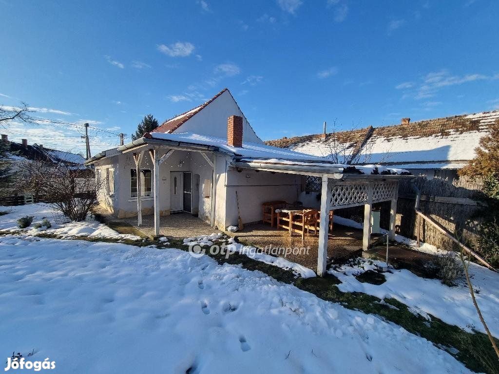 Veszprém vármegyében, Pápától 10 km-re a Bakony lábánál kínálok megvételre 477 m2-es telken található 75,5 m2-es nyaraló jellegű családi házat. A bakonyi hangulatú település jól megközelíthető tömegközlekedéssel, gépkocsival. A vidéki stílusú ház az 1960-as évek végén épült, Több felújításon esett át. Statikailag és szerkezetileg jó állapotú. Falazata tégla és kő, tetőszerkezete új, padlástere gondozott. Valamennyi nyílászáró anyaga műanyag, utca fronton redőnnyel. A ház elosztását tekintve áll: 2 egész szobából, 1 félszobából, előszobából, konyhából, fürdőszobából és WC helységből, kamrából, és 2 teraszból. A házhoz egy nyári konyha jellegű,a házhoz közvetlen csatlakozó épületrész is tartozik. Az udvaron szép parkosított előkert, kút, verem-borospince, piknikező, garázs, fedett terasz találhatók. Itt élvezheti a csendet és nyugalmat a vidéki környezetet. Téli hideg napokon a ház melegéről hűtő-fűtő klímák és kályha, kandalló tud gondoskodni. A családi ház igény szerint bútorozva is megvásárolható. Ez az ingatlan nyaralónak vagy kisebb otthonnak ideális. Ajánlom mindazon érdeklődők figyelmébe, akik falun, de mégis egy városhoz közel, vonzó természeti környezetben, barátságos, biztonságos és nyugodt, családias helyen keresnek otthont. A településen található erdőkkel, hegyekkel körülvett 34 hektáros víztározó-tó, amely nyaranta kellemes kikapcsolódást nyújt a pihenni vágyóknak, a környék pedig számos túrázási lehetőséget kijelölt túraútvonalakon. A tó 10 perc sétára található a háztól. Az OTP Ingatlanpont teljes körű ügyintézéssel áll az eladók és a vevők rendelkezésére. A kínálatunkból választott ingatlan finanszírozásához kedvezményes hitelkonstrukciót kínálunk. Az adásvételi szerződés megkötéséhez igény szerint megbízható ügyvédi közreműködést biztosítunk, és segítséget nyújtunk az adásvételhez kapcsolódó ügyek intézéséhez is. Amennyiben felkeltette érdeklődését az általam kínált ingatlan, keressen bizalommal.