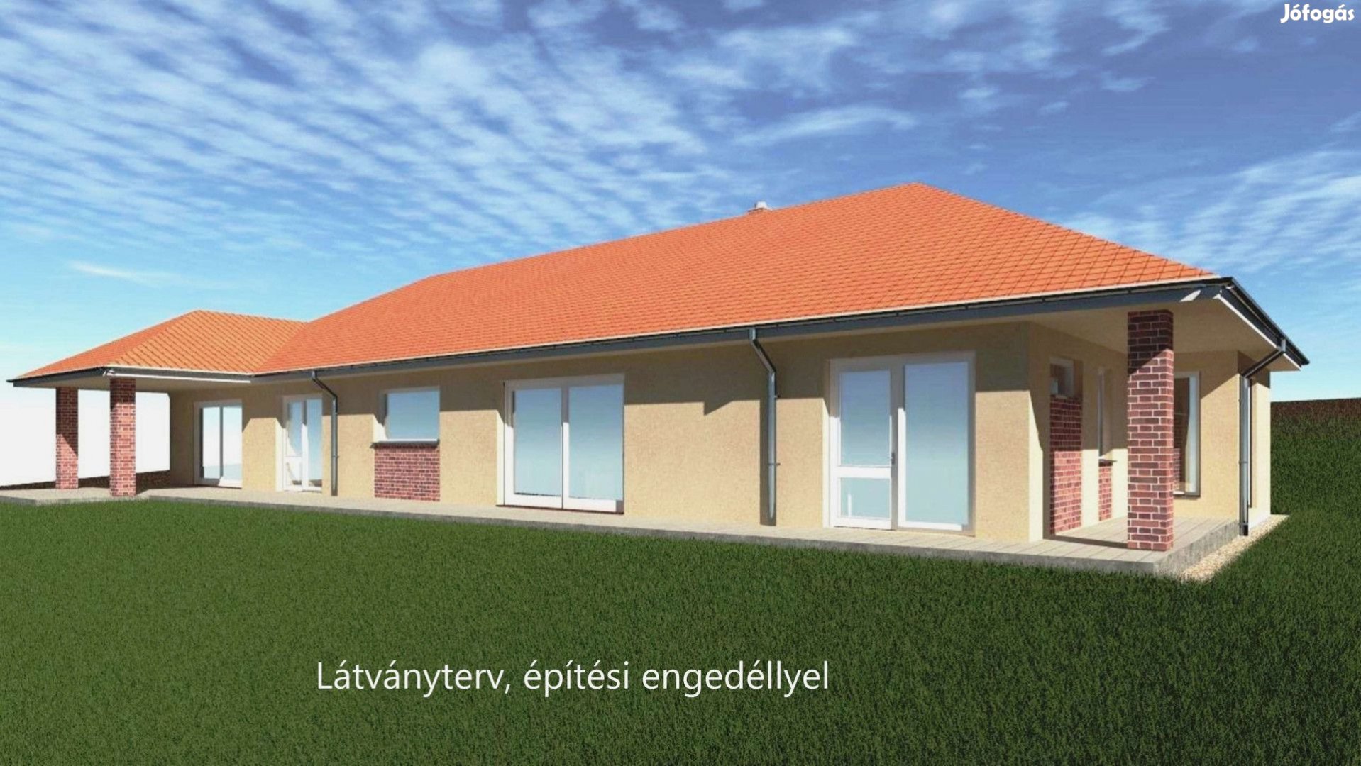 A vételára az ingatlannak tartalmazza az építészeti tervet és az építési engedélyt egy modern, földszintes lakóház megépítésére.