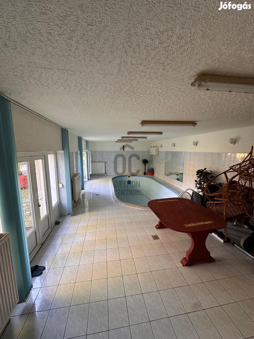 A 300m2 belső tér 11x5 méteres medencét ,szaunát, hatalmas bár pulttal felszerelt közösségi teret 3 hálószobát konyhát ,fürdőt és minden földi jót rejt magában.