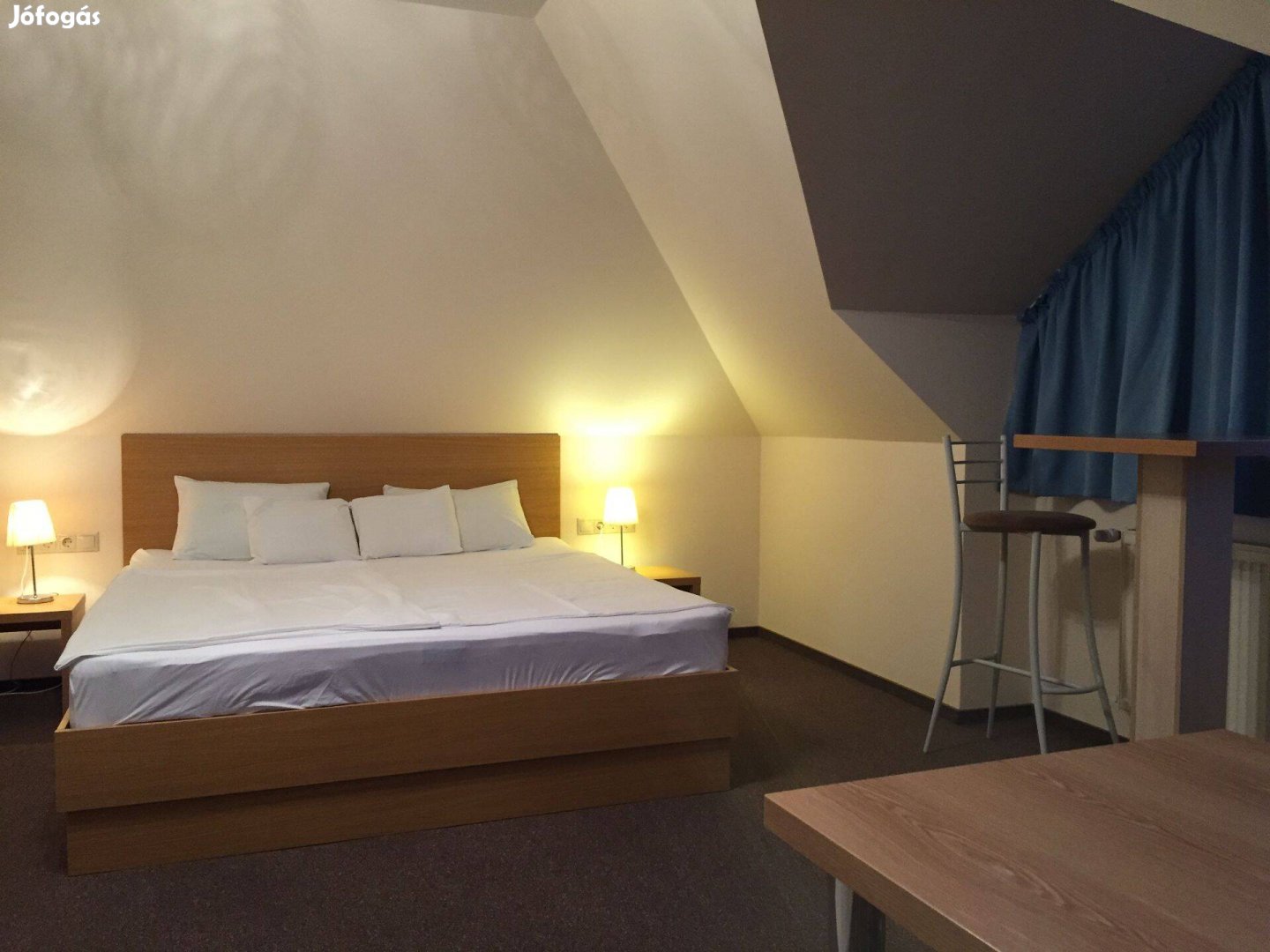 Tágas lakás terasszal és panorámával. Tetőtéri lakás 93 m2 nettó (120 m2 bruttó) 2 hálószoba és 1 félszoba, nappali Amerikai konyhával, 2 teljes kiépítésű fürdőszoba tusolóval, WC, mosdó. Tároló. Folyosó és lépcső. Beépített bútorral. Külön víz, gáz és villany merővel ellátva. Parkoló hely zárt udvaron elektromos kapuval.